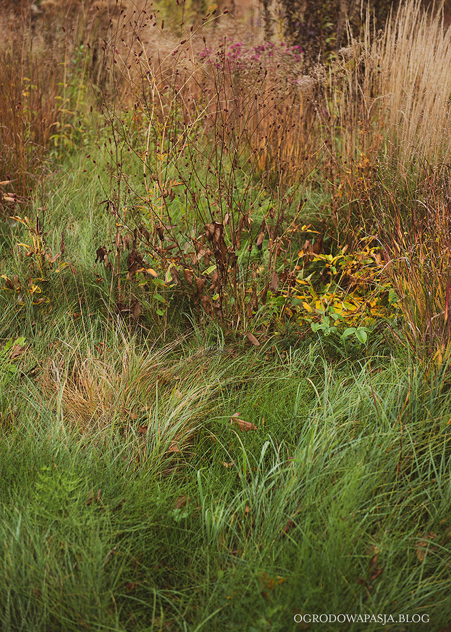 Rzeczywiście, Oudolf odwrócił naszą uwagę od kwiatów, a skierował ją na uroki procesu przemiany. I za to mu cześć i chwała. Ale głównie, w moim odczuciu, przesunął punkt ciężkości na byliny, i to niektóre grupy, pokazując, że ogród z mniej wyrazistą strukturą, albo zgoła bez niej, może być piękny.